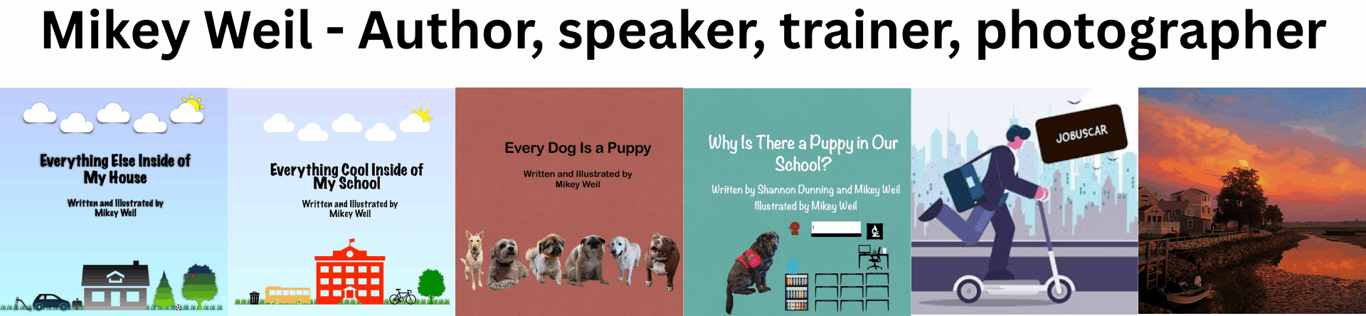 In addition to photography, Mikey is the author of several children’s books and a darkly funny collection of short horror stories. His published works include Everything Cool Inside of My School, Everything Else Inside of My House, Every Dog is a Puppy, and Coming Soon: Short Horror Stories, with more volumes on the way. Each book reflects a different part of his creative voice—from playful and heartwarming to sharp, surreal, and strange.